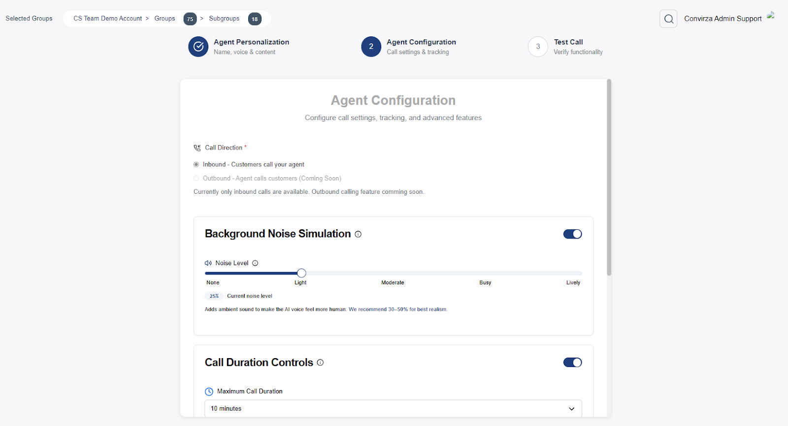 - Call Duration Controls (Optional): Enable to manage or limit call lengths.