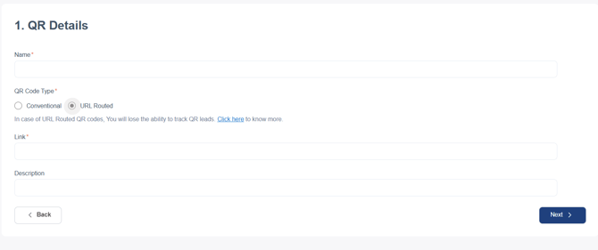 URL-Routed – redirects to a specific URL and tracks scan events.
