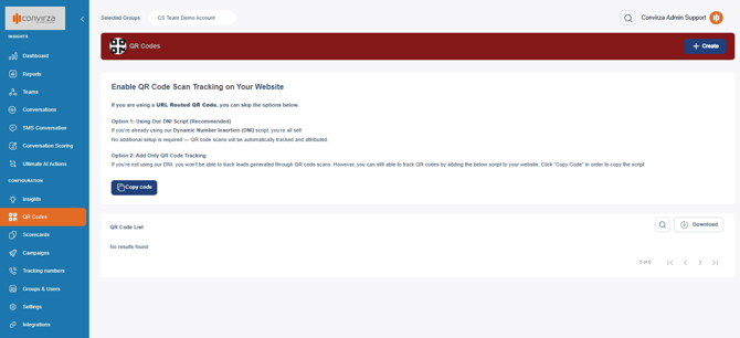 Go to the Left Panel → QR Codes in the Convirza platform.